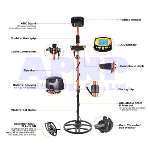 Metal Detector 11.5″x15″ Super Big Coil Sensitivity 35-38cm Auto Ground Balance Overload (Large Target) Alert Multiple Notch System Real Time Depth Bar Graph